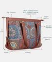 COMPATIBILITY: Our Office Bag is an ideal laptop bag, handbag or a Professional Bag for Women. It can fit a laptop of upto 15.6 inches, COMPONENTS: On the Inside there is a padded Laptop Sleeve with Velcro, a larger compartment for books, tiffin, chargers. Also there are 2 small pockets for a Wallet, Pen and Keys. The Bag has a Zip Closure and Double Straps for carrying comfortably., MATERIAL: Mae of Fine Indian Print Fabric. The Leather used is 100% PeTA approved Vegan Leather, making it a cruelty-free and a responsible product. All products are handmade, with a running fabric and hence the exact print on the product might slightly differ from the photos.
