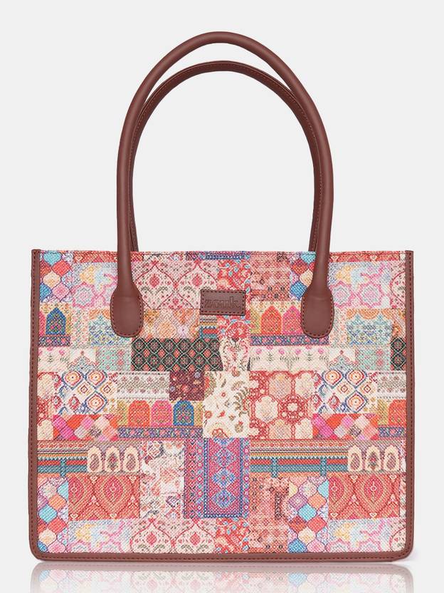 This is a Proudly Indian and 100% PeTA approved book tote,a versatile and functional accessory designed to effortlessly blend fashion and practicality. This unique handbag takes inspiration from the classic book tote design while adding modern elements that make it a true standout.It features a spacious main compartment, providing ample room for your belongings, whether it's your favorite book, a tablet, or everyday essentials like your wallet, keys, and phone. It includes a lining zipper to secure and organize your items. Keep your valuables safe and within reach in the interior zipper pocket.One of the standout features of the Zouk Book Tote Handbag is its foldable gusset. This innovative design element allows you to conveniently fold and store the gusset when the bag is not in use. This is a timeless accessory that can effortlessly elevate any outfit, whether you're going for a casual day out or attending a more formal occasion.