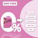 1. [MEDICATED CHIP]: Integrated with a Medicated Chip for Menstrual Health Solution is a First of its Kind in India. Providing 7 Menstrual Health Benefits – Preventing Rashes and Allergies, Reducing Inflammation, Enhancing Immunity and Metabolism, Eliminate Odour, Providing Anti Bacterial and Anti Oxidant, Relieving Swelling and Pain, and Protecting the Skin. 2. [5X MORE ABSORPTION WITH LEAK-LOCK TECHNOLOGY]: Ensures Rapid & High Absorption without Reverse Osmosis always keeps you Dry & Non-Sticky. 3. [CLOUD-LIKE SOFT]: The Top Layer is made of 100% Organic Cotton with a velvety-soft surface and Hypoallergenic. 4. [BREATHABLE LAYER]: The Bottom Layer that prevents Leakage and Reduces Moisture & Warmth between the napkin and the skin. 5. [PREMIUM PACKAGING]: Each pad is Sterilized and 360° sealed in a Premium Aluminium Foil to prevent Hand Contact and Secondary Contamination. Travel-Friendly, Easily Placed in Pant Pockets, Handbags, School Bags & Many Means. 6. [LAB TESTED & CERTIFICATIONS]: ZOY pads are lab-tested and free from toxins, rashes, allergies, chemicals, phthalates, fragrances, and VOCs. Safety-certified by Safe Cosmetics Australia. 7. [COST EFFECTIVE]: Absorption Capacity is 3-5 times higher than that of conventional napkins in the Market & It has huge functional health benefits that make it Cost-Effective compared to others.