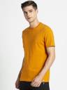 ZL-SOLID-MUSTARD-TSHIRT Men Solid Round Neck Pure Cotton Yellow T-Shirt