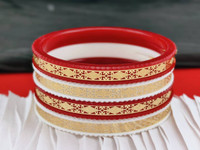 Fashioned with a thoughtful combination of brass and plastic, these bangles are coated with a gold-toned plating that lends a traditional look. This blend offers a smooth finish and remains light enough for comfortable, extended wear. In addition, the materials are easy to care for and help maintain the appearance over time. The overall gold-tone surface adds a festive element that complements both casual and ceremonial dressing.