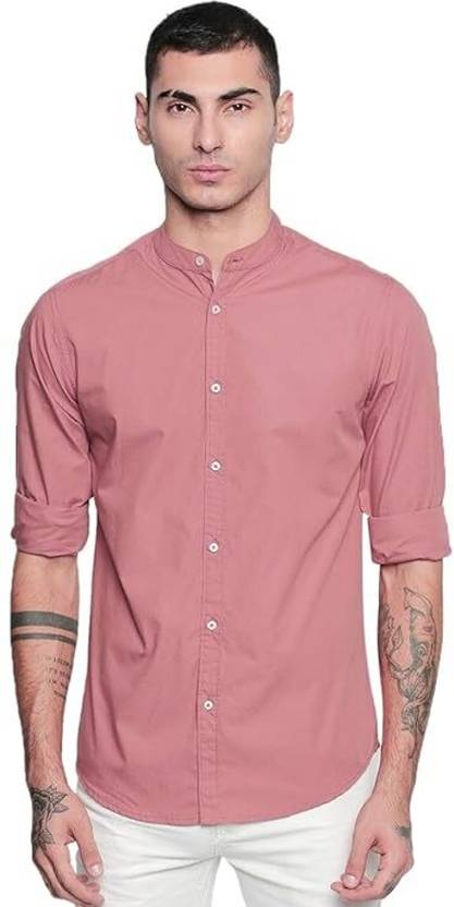 Zubi Men Slim Fit Solid Mandarin Collar Casual Shirt