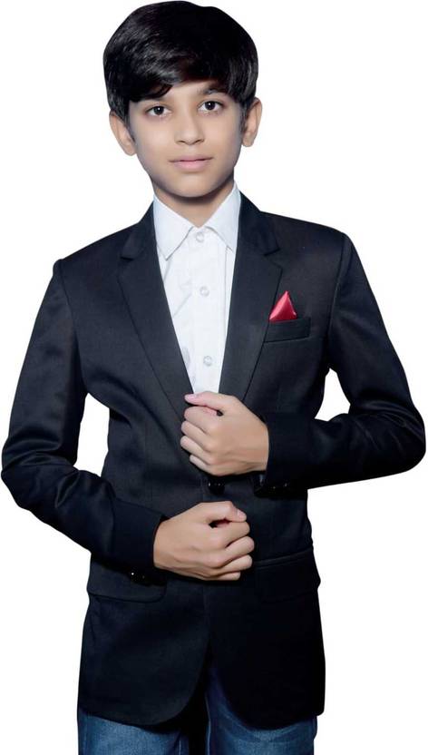 Boys Solid Single Breasted Formal Blazer (Black)