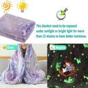 The glowing blanket is made of High-quality luminous fiber is woven material to absorb and store light energy, glowing in the dark, mysterious and interesting. Machine Washable Repeatedly: Does not affect the luminous performance; Firm plush, no ball, no shrinkage, no fading, no deformation, and skin-friendly. Get it now to light up a starry sky for children at night, surprise your kids on Birthday Christmas, or any occasion. This Glowing blanket is the best guardian for kids at night, which can inspire funny ideas for kids to enjoy the magical glow whether they are having sleepovers or playdates or just cuddling on the couch with mom and dad. Perfect for Travels too. Made of super soft and smooth, skin-friendly and comfortable soft fabric, keeps warm and suitable for all weather.