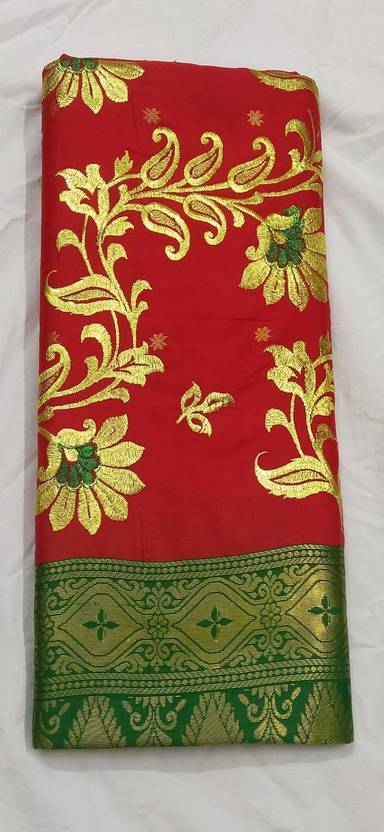 Woven Handloom Art Silk Saree (Red, Green)