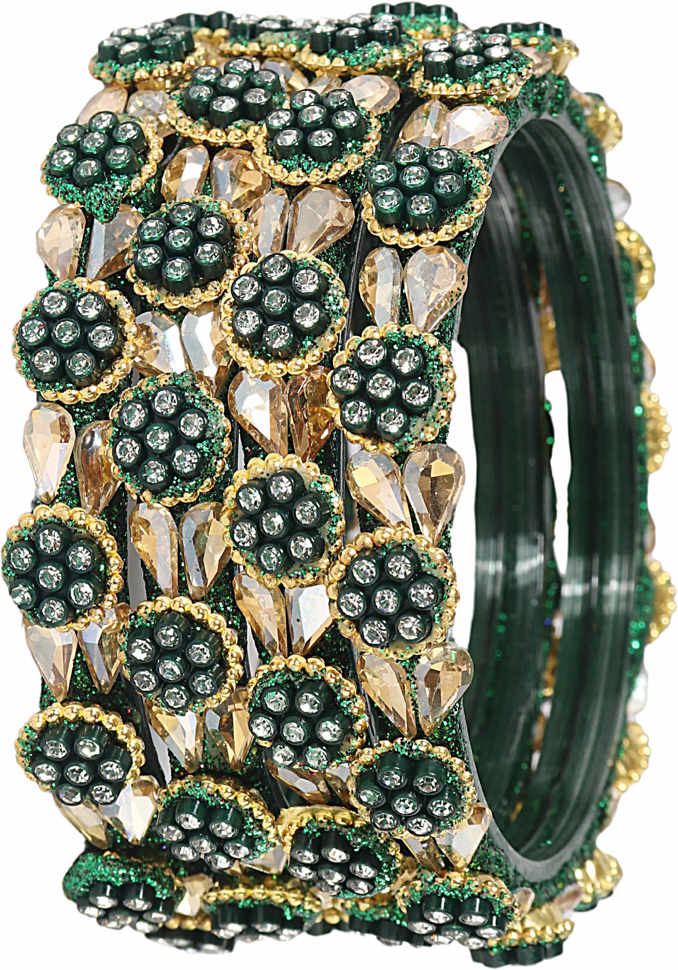 ZULKA Brand Features Latest Jaipuri Traditional Design Golden Beads and Zirconia Stone Work Beautiful Glass Kada Bangles Set For Women & Girls. These Stylish Glass Bangles Set is a Elegant piece of Jewellery that combines New Style with Modern Beauty, capture the essence of a Wedding, Party, Anniversary, Function, Festival, Daily Wear & Special Occasion. These Bangles are made from High-Quality Glass, Golden Zircon Diamond Stones & Beads Material. Those Bangles are durable and of vibrant colours symbolizes love, passion, and new beginnings. The intricate design showcases ZULKA's skillful craftsmanship, ensuring you shine on your special day. The set also doubles as a versatile piece of bridal jewelry, complementing a wide range of outfits, including classic red sarees and modern lehengas. ZULKA prides itself on offering the finest quality, timeless style, and unwavering commitment to tradition. The set is designed to make your Special day extra special, ensuring you look and feel your best. Elevate your bridal ensemble with ZULKA's Bangles Set and make memories that will last a lifetime. These ZULKA's Designer Bangles Set Have a Premium Finish and are Perfect for Weddings, Engagements, Functions, Festival, Rituals, and Events. The Brand ZULKA sells all types of Glass Bangles, Metal Bangles, Acrylic Bangles, Chuda Sets, Kaleera Latkan Sets, Kadas, Bracelets, Women's and Girls Traditional to Modern Jewellery, and many More. And Please Refer to our Size Chart to Know your Hand Size Precisely. Clean bangles with a smooth cotton cloth, avoid direct water, perfume, deodorant, sunlight, and chemicals, and store in an airtight zip-lock pouch to maintain longevity. Thank You For Choosing ZULKA's Latest Glass Bangles Collection.