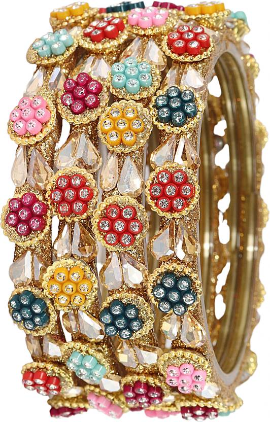 ZULKA Brand Features Latest Jaipuri Traditional Design Golden Beads and Zirconia Stone Work Beautiful Glass Kada Bangles Set For Women & Girls. These Stylish Glass Bangles Set is a Elegant piece of Jewellery that combines New Style with Modern Beauty, capture the essence of a Wedding, Party, Anniversary, Function, Festival, Daily Wear & Special Occasion. These Bangles are made from High-Quality Glass, Golden Zircon Diamond Stones & Beads Material. Those Bangles are durable and of vibrant colours symbolizes love, passion, and new beginnings. The intricate design showcases ZULKA's skillful craftsmanship, ensuring you shine on your special day. The set also doubles as a versatile piece of bridal jewelry, complementing a wide range of outfits, including classic red sarees and modern lehengas. ZULKA prides itself on offering the finest quality, timeless style, and unwavering commitment to tradition. The set is designed to make your Special day extra special, ensuring you look and feel your best. Elevate your bridal ensemble with ZULKA's Bangles Set and make memories that will last a lifetime. These ZULKA's Designer Bangles Set Have a Premium Finish and are Perfect for Weddings, Engagements, Functions, Festival, Rituals, and Events. The Brand ZULKA sells all types of Glass Bangles, Metal Bangles, Acrylic Bangles, Chuda Sets, Kaleera Latkan Sets, Kadas, Bracelets, Women's and Girls Traditional to Modern Jewellery, and many More. And Please Refer to our Size Chart to Know your Hand Size Precisely. Clean bangles with a smooth cotton cloth, avoid direct water, perfume, deodorant, sunlight, and chemicals, and store in an airtight zip-lock pouch to maintain longevity. Thank You For Choosing ZULKA's Latest Glass Bangles Collection.