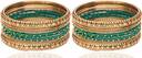 This Matte & Glossy Finish Metal Alloy and Silk Thread , Studded With Zircon Stone bangle Set For Women/Girls