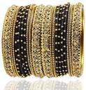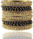 This Matte & Glossy Finish Metal Alloy and Silk Thread , Studded With Zircon Stone bangle Set For Women/Girls