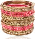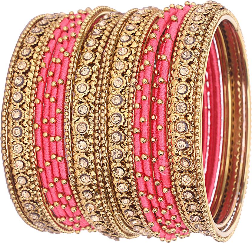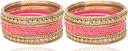 This Matte & Glossy Finish Metal Alloy and Silk Thread , Studded With Zircon Stone bangle Set For Women/Girls