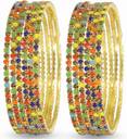 ZULKA Non Precious Metal Base Metal With Zircon Gemstone Studded Glossy Finished Bangle Set For Women and Girls