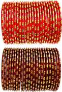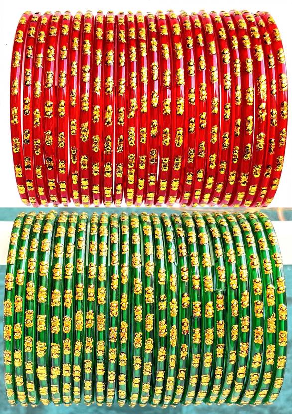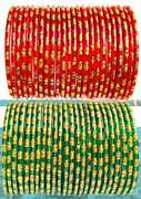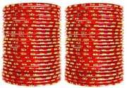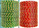 Golden Polka dot Glass bangle set of 48-GRN+RED