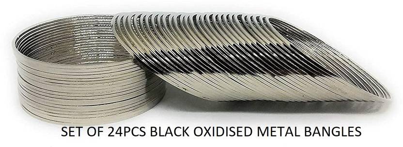 OXIDISED METAL BANGLE SET OF 24- BLACK