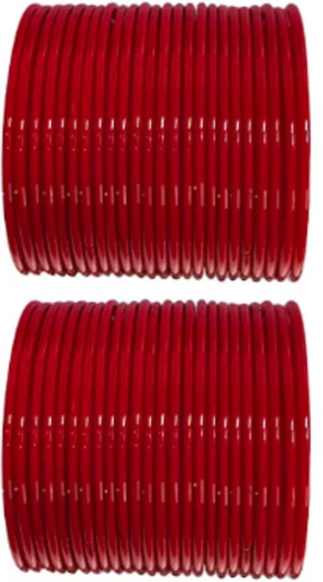 Plain Glossy glass bangles set of 48- red