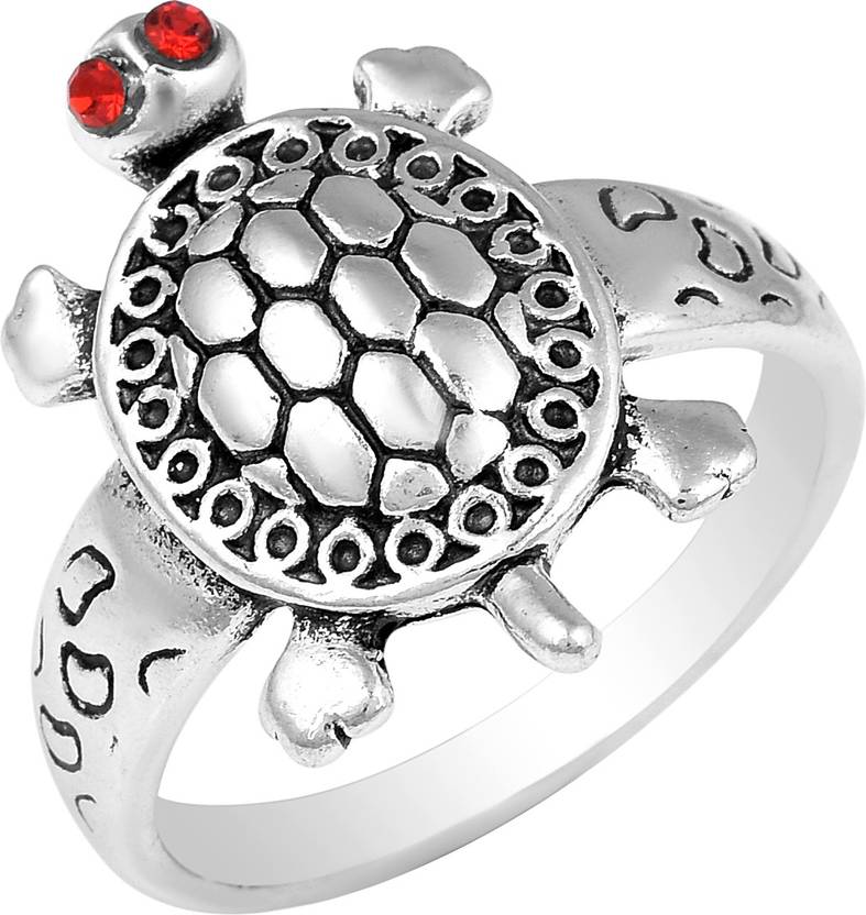 Zumrut Silver Plated with CZs Studded Tortoise Design Vastu Feng Shui Kachua Good Luck Charm Fashion Free Size Finger Ring for Women/Men Brass Zircon Silver Plated Ring