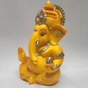 Introducing the exquisite Yellow Mukut Ganesha, a stunning masterpiece handcrafted with passion and attention to detail by local artists in India. Made from high-quality poly resin, this compact 3.5-inch Ganesha figurine showcases a vibrant terracotta color that radiates warmth and positivity. The intricate golden jewelry elegantly complements the yellow hue, adding a touch of opulence to this divine creation. Every aspect of this artwork has been meticulously crafted, capturing the essence of Ganesha with lifelike eyes and captivating curves. This versatile piece of art is perfect for various settings, whether it's adorning your car dashboard, enhancing the ambiance of your home or office, or presenting it as a thoughtful gift for housewarmings and special occasions. Its compact size allows you to place it anywhere you desire, adding a touch of spirituality and serenity to your surroundings. To ensure its longevity, it is recommended to avoid washing the figurine with water. Instead, simply wipe it gently with a dry cloth to maintain its pristine beauty for years to come. Ganesha, also known as Vinayaka or Pillayar, is a revered deity symbolizing wisdom, prosperity, and good fortune. Bring home the enchanting Yellow Mukut Ganesha today and experience the divine blessings and positive vibes it brings to your life.