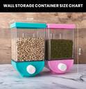 Multi-function: Wall-mounted rice storage tank can hold all kinds of food like grains, rice and so on., Convenient for storing grains in the kitchen, help you sort them orderly, which easily to find and take out., The transparent body can see the food in the box, you can find food easily. With movable partition, you can adjust grid’s volume according to your needs. Once you press the button, the food will leak down., With snap design, easy to paste and install, it can be used on the wall or refrigerator door, you also can punch the wall and put it on the wall, in this way, the product isn’t easy to fall off., The wall-mounted grain dispenser makes the kitchen clean and tidy, you can put enough food in the kitchen in orderly.