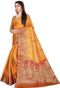 Quintessentially Indian, the saree is an outfit which women can carry off with great panache. With the right material and drape, it can accentuate the beauty of women of all ages and forms. Be it a festival or a wedding, sarees are a hot favourite worldwide, and it’s easy to see why. Sarees give you the opportunity to give a modern touch to a traditional Indian attire. One of the most graceful costumes made from unstitched fabric-the saree-the much loved choice for most Indian women can be worn in so many different ways. The saree and all its parts, the body, the pallu and the border, all of them play a significant role in making the entire look happen. Banarasi silk is popular for its good drape. Work Type: Woven zari design all over finish Type: Soft \comfortable to wear; weave Type: banarasi; occasion: ceremony Wash care: dry clean or hand wash in cold water; measurement: saree length - 5.5 mtr, blouse length - 0.80 mtr