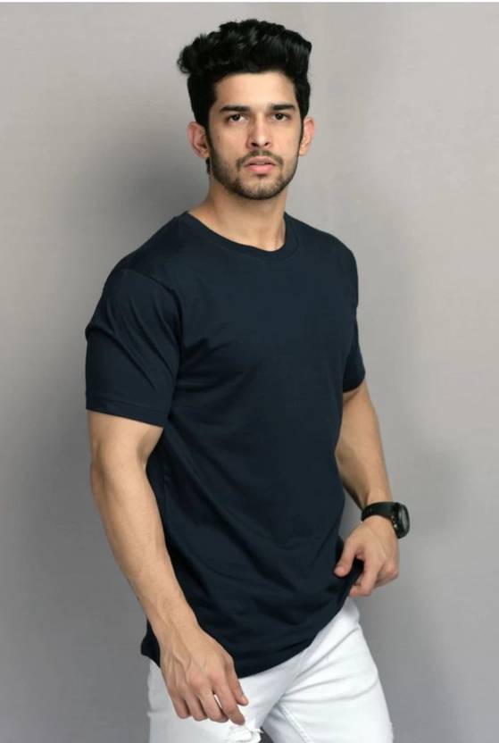 Men Solid Round Neck Cotton Blend Black T-Shirt