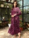 Floral Print Polyester Stitched Flared/A-line Gown (Purple)