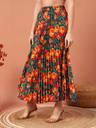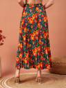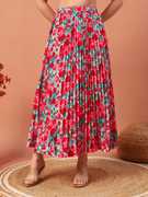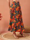 Make a bold fashion statement with this stunning pleated maxi skirt featuring a vibrant floral pattern. The eye-catching design showcases beautiful orange and red roses against a rich emerald green background, creating a mesmerising garden-inspired look. The comfortable elastic waistband ensures a perfect fit while the flowing pleated silhouette adds graceful movement to every step. This versatile maxi skirt falls elegantly to ankle length, making it ideal for both casual outings and special occasions. The premium fabric drapes beautifully, creating an enchanting effect with its perfectly structured pleats. Style this gorgeous skirt with a solid-coloured top and complementary accessories for a sophisticated ensemble. The striking colour combination and timeless floral print make this skirt a wardrobe essential that transitions seamlessly from day to evening wear.