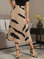 Designed for both style and comfort, this skirt features an elastic waistband for a snug and secure fit. It has a midi length and pleated design that creates a flattering silhouette. The design of this skirt also accentuates your curves while providing freedom of movement. With its flared shape, this skirt is versatile enough to be dressed up or down for any occasion.