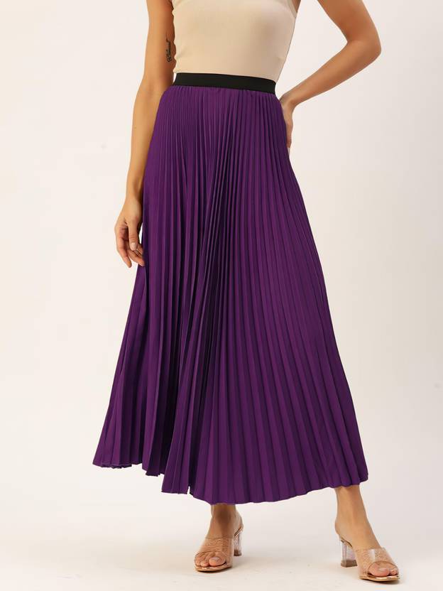 Women Accordian Pleat Maxi Flared Solid Skirt is a stylish and versatile piece that combines elegance with comfort. This skirt features accordion pleats that create a flowing and dynamic silhouette, allowing for ease of movement. The maxi length adds sophistication, while the flared design adds a touch of femininity. Made from high-quality solid fabric, this skirt is both durable and chic, making it suitable for a variety of occasions, from casual outings to more formal events.