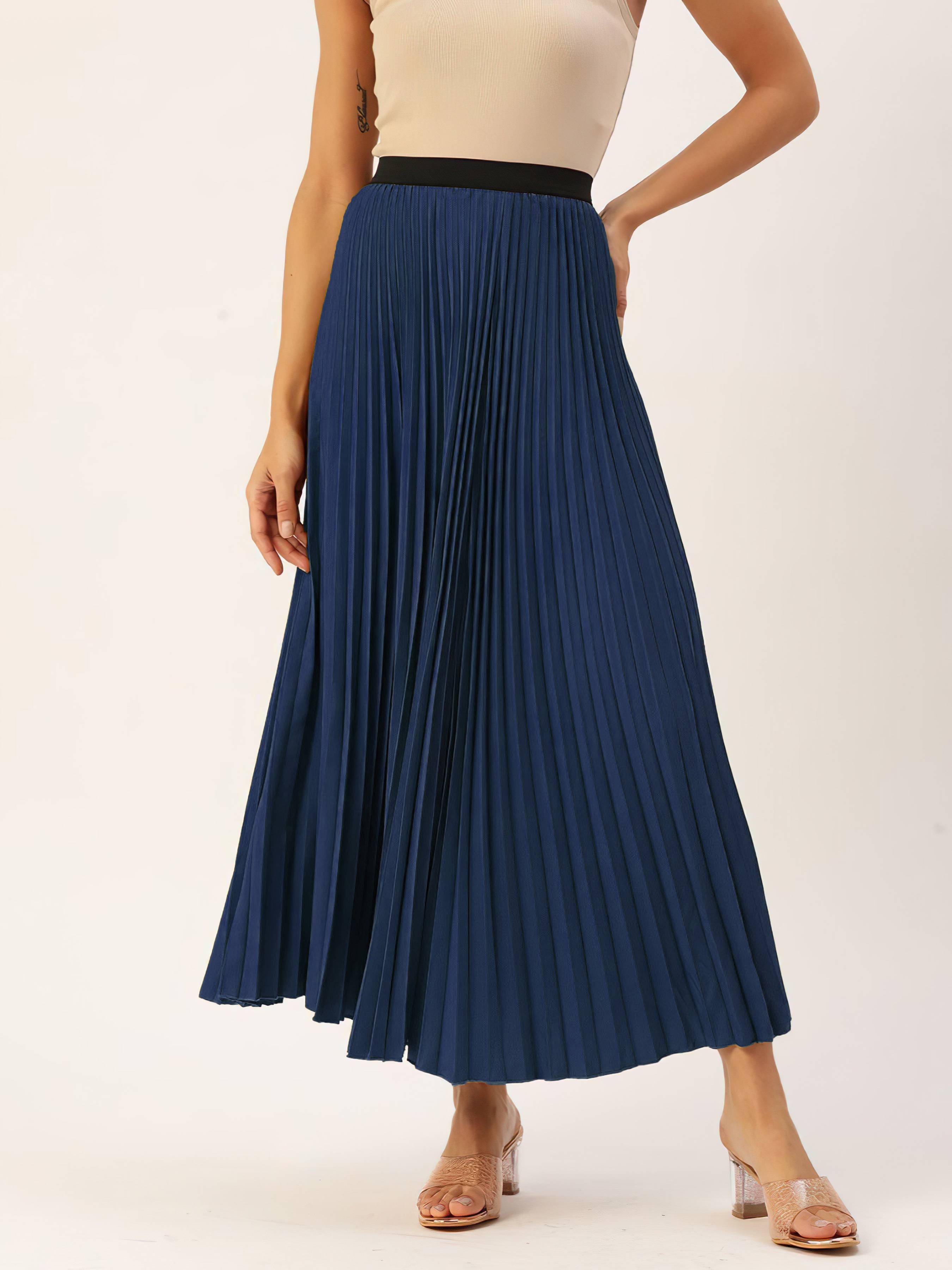 ZWERLON Solid Women Flared Dark Blue Skirt