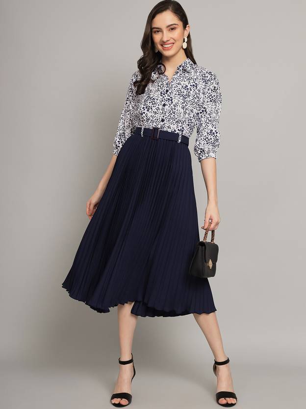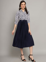 ZWERLON Women A-line Dark Blue Midi/Calf Length Dress