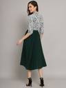 ZWERLON Women A-line Dark Green, White Midi/Calf Length Dress