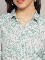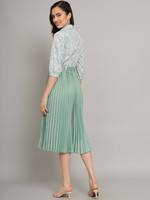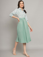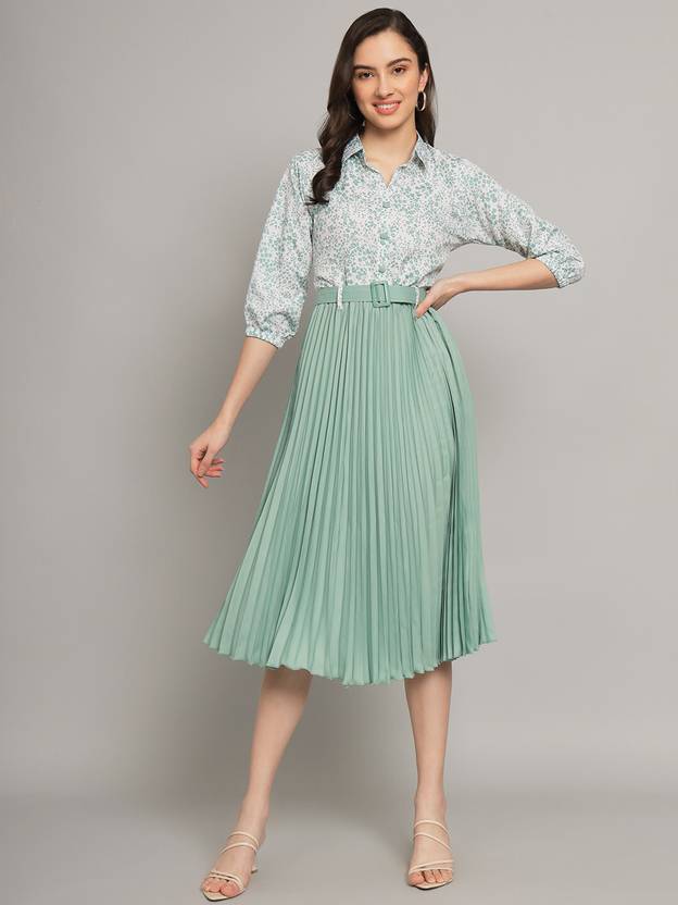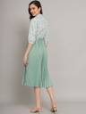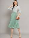 ZWERLON Women A-line Light Green, White Midi/Calf Length Dress