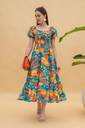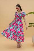 Step into the season with this vibrant floral midi dress, featuring a flattering square neckline, puffed sleeves, and a smocked bodice for a chic, feminine fit. The flowy skirt and colorful floral print add effortless charm, perfect for any occasion. Pair with sandals or wedges for a confident, stylish look. Check the size chart for the perfect fit.