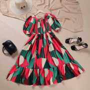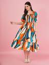 Embrace the vibrant colours and bold patterns of this stunning dress, perfect for making a statement at any occasion. Crafted with a flattering fit-and-flare silhouette, this Short Sleaves dress features a striking abstract print in shades of Multi Color. The lightweight fabric drapes beautifully, while the tiered ruffles add a playful touch. Pair it with strappy sandals and statement earrings for a chic and stylish look. With a versatile knee-length hemline, this dress can seamlessly transition from day to night. Indulge in the season's hottest trend with this eye-catching piece that is sure to turn heads wherever you go. Available in sizes ranging from XS to XXL to accommodate various body types. Machine Wash recommended for best care.