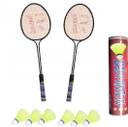 Double Shaft Badminton racquet Set with Free Shuttlecocks Pack of 6