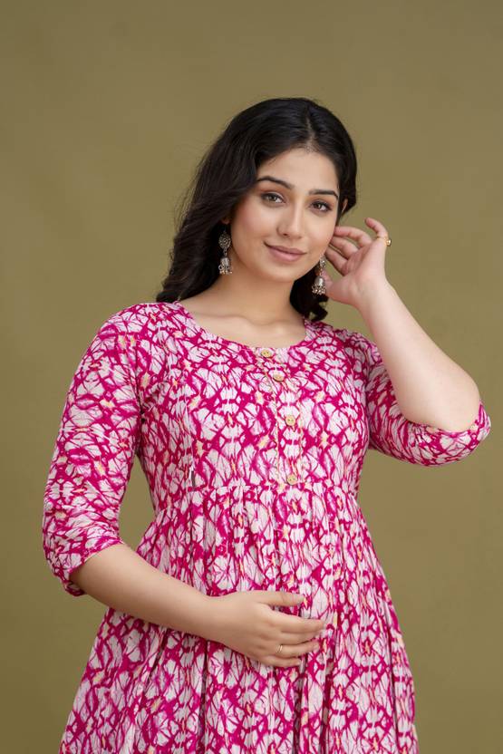 Printed Rayon Blend Stitched Anarkali Gown (Pink)