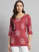 Zyla Women Printed Straight Kurta (Pink)