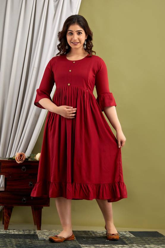 Women Solid Cotton Rayon Anarkali Kurta (Red)