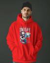 Men Printed Hooded Neck Red Sweater