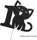 CAT Cake Topper (1ST Birthday)Cat One Cake Topper, Happy 1st Birthday Cake Decor, I'm One Sign, Kitty Birthday Party Decoration Supplies, Meow Sign, - Black Glitter