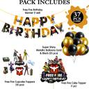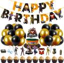 ZYOZI Free Fire Happy Birthday Decoration Kids,Free Fire Birthday Party Decoration Banner with Latex Balloons, Cake Topper and Cup Cake Topper for Boy Birthday 1st 2nd 3rd 16th 18th 21st (Pack of 37) (Set of 37)