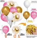 Pink Balloon Arch Decoration The color of pink gold white balloon arch in this set is vivid and lively, they can be repeatedly used and keep for a long time. Pink balloon garland kit is very gorgeous when used to make balloons bouquets for room and table decorations, you can hang it on the ceiling, stick it on the wall or hang it up as party background. It is very interesting thing to DIY your own pink confetti balloon decorations for your party with family and friends, and take photos with great memories in front of the balloon backdrop. The pink confetti balloons are perfect for pink themed parties, anniversaries, weddings, baby showers, bridal showers, graduations, mother’s day, engagements, birthday parties,etc
