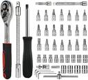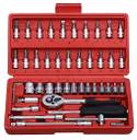 A Highly Useful 46 Pcs Combination Tool Kit From Auto Furnish. 46 Pcs Tool Kit Home Pc Car Screwdriver Set 46 In 1 Pcs Tool Kit And Screwdriver Set For Home, Office, Pc And Car Item Special Kinds Of Bit Plug Which Can Be Fixed In A Drill Machine As Well For The Purpose Of Screwing And Unscrewing This Tool Is Flexible And Can Bend And Lock At Various Angles While Using All The Bits Are Made Up Of Tampered Hard Steel The Bits Are Available In Different Shapes And Sizes The Screwdriver Has A Sturdy And Easy-Grip Rubber Handle Features : 1 4' Dr. Bits Ratchet Driver Three-Way Ratchet Driver Durable Case 7 Socket : 3 16', 1 4', 5 16', 11 32', 3 8', 7 16', 1 2' 7 Socket : 6Mm, 7Mm, 9Mm, 10Mm, 11Mm, 12Mm 1 Extension Bar 1-3 Reversible Ratchet Driver 1 Bit Adapter 7 Torx Bit : T10, T15, T20, T25, T27, T30, T40 Hex Bit : 1 16', 5 64', 3 32', 1 8', 5 32', 3 16', 1 4', 7 32' 3 Phillips Bit : No. 1, 2, 3 2 Slotted Bit : 3 16', 1 4', 9 32' 2 Square Bit : No 1, 2 1 Blown Mould Plastic Case. You Can Open 16 Different Sizes Of Nuts, A Very Important Part Of Your Toolkit.This Unique Screwdriver Set With 41 Different Types Of Heads For The Comfortable Plastic Grip Handle Gives You Limitless Options To Work With. Simply Select The Type You Need And It Slips Right Into The Hold With A Magnetic System. This Screwdriver Can Also Be Bent At The Neck, Which Gives You More Flexibility To Work In Difficult Areas Or Small Spaces.