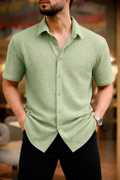 Men Slim Fit Self Design Spread Collar Casual Shirt