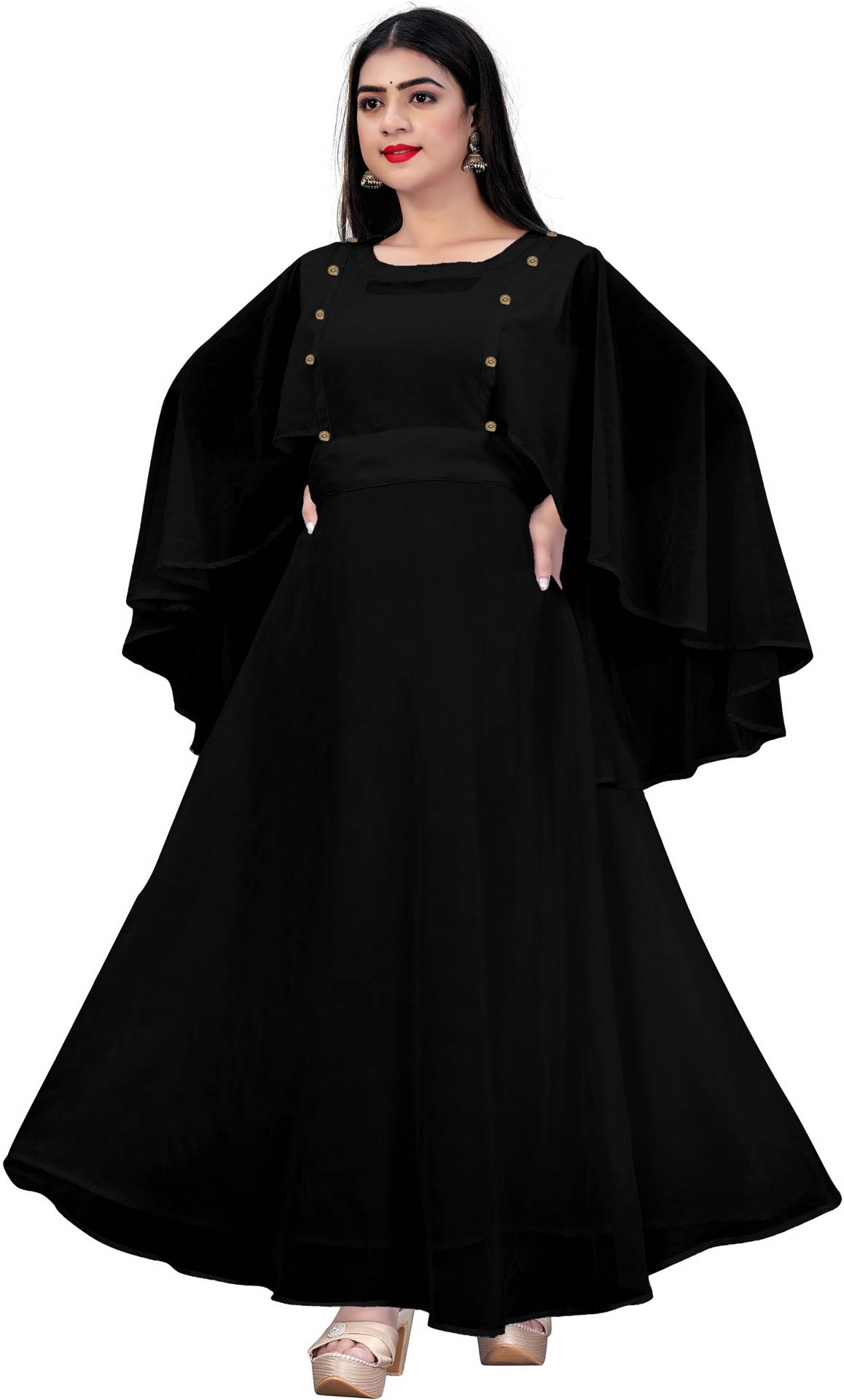 ZYXA Women Solid Anarkali Kurta (Black)